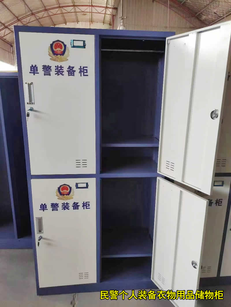 民警裝備(bèi)衣服用品儲物櫃,可定製尺(chǐ)寸,現(xiàn)貨參(cān)數:1800*900*500,厚度0.8mm,材料采(cǎi)用上海寶鋼冷軋(zhá)鋼板(bǎn),經環保靜電粉末噴塑,高溫固化,防鏽耐用。適合裝配(pèi)單位衣帽(mào)間(jiān)方便(biàn)幹警使用,內部可懸掛衣物,存放個人物品,每(měi)個(gè)配置專用(yòng)鑰匙,安全保密。