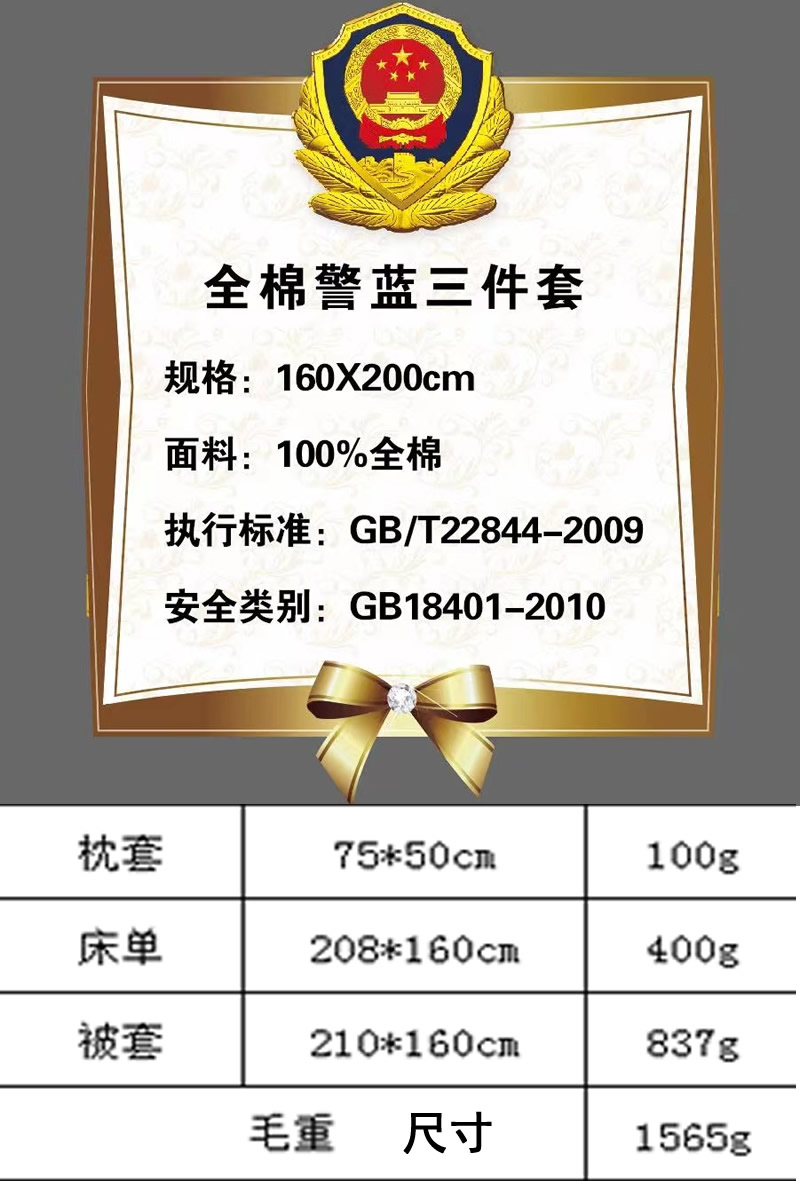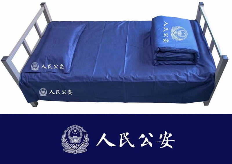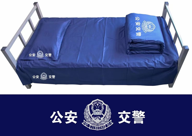 公安藍純棉床單被套枕頭套,警察宿舍(shě)被(bèi)子圖片(piàn),警用枕頭套