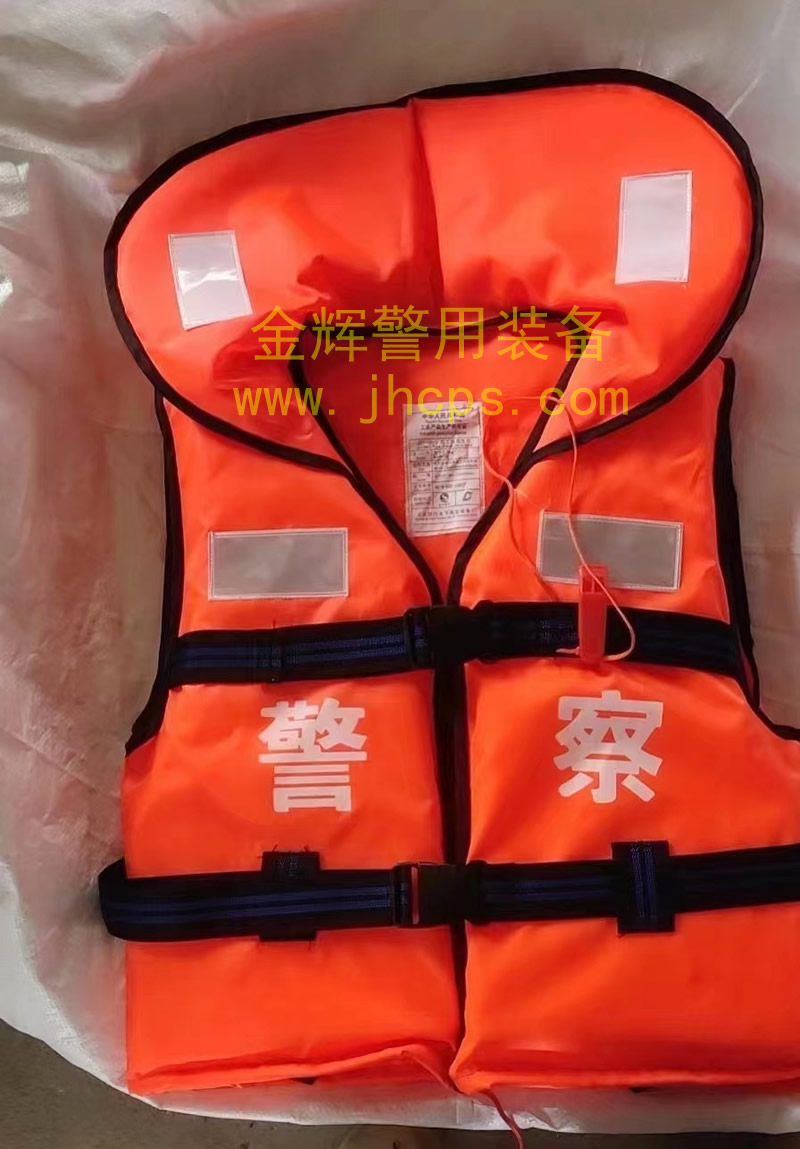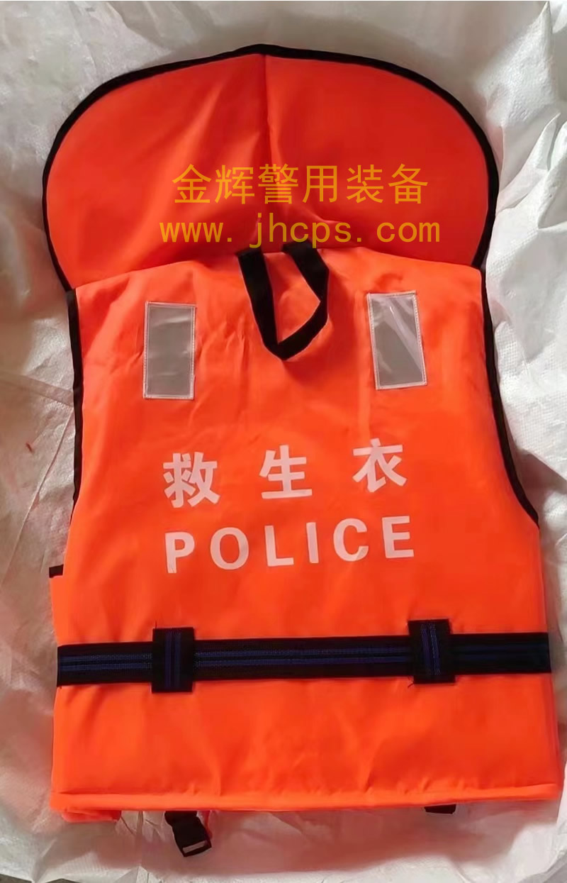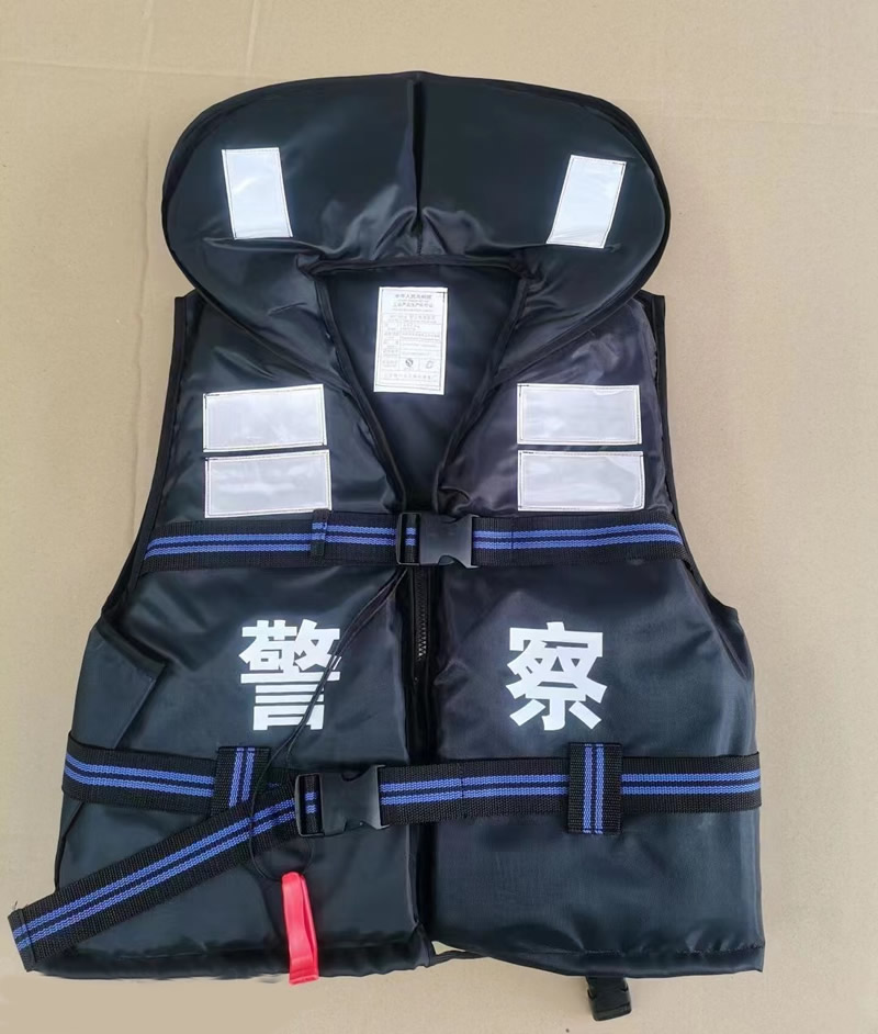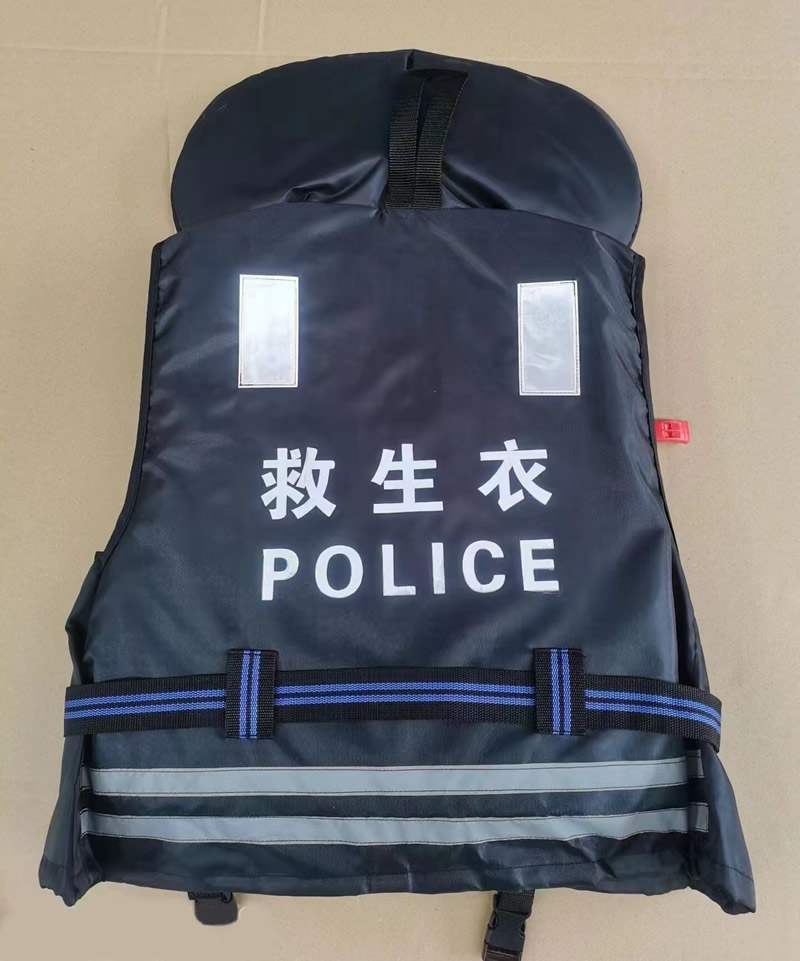 警用救生(shēng)衣,適(shì)合(hé)水上公安日常執法(fǎ)執勤巡邏,或者防洪時候穿著。警用救生衣是警用裝備中日常必備裝備。本款產品浮力大於(yú)等於15公斤,可以承(chéng)重300斤的體重,帶護脖,可以(yǐ)有效的加強頭(tóu)部(bù)浮力。顏色為藏青色,多個反光條(tiáo),前麵反光警察字,後麵POLICE反光字,有檢測(cè)報告,文字可定製。
