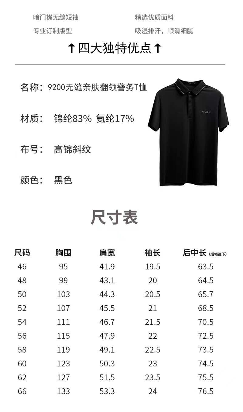警察翻領無縫T恤,高(gāo)檔警務POLO休閑衫,男女公安專用T恤