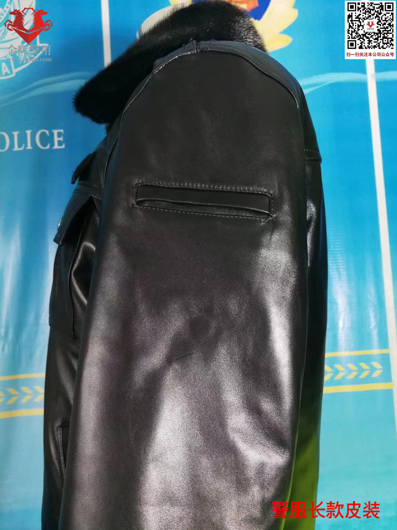 高檔長款警(jǐng)用皮衣,采用純綿羊皮/山羊皮,搭配(pèi)羊剪絨內膽,水貂/獺兔毛領,精致美觀,穿(chuān)著舒適(shì),防寒效果最佳,A級羊皮皮質手感精致,零度以下不(bú)發硬皮(pí)質,真(zhēn)材實料,可定製(zhì)任意型號。警(jǐng)服皮衣采用隱藏式標簽設計,上下班可隱藏後通勤穿著。
