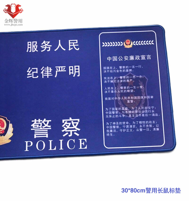 30*80警用鼠標墊 原裝(zhuāng)警察長款鼠標墊 警用辦公用品係列(liè),原裝無異味,耐色牢度。