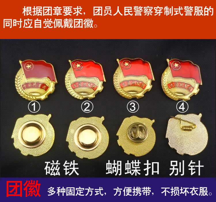 警服佩戴團徽 團員(yuán)標誌(zhì) 公安(ān)警察別針團徽 警用磁扣團徽 左胸徽佩戴警察團徽