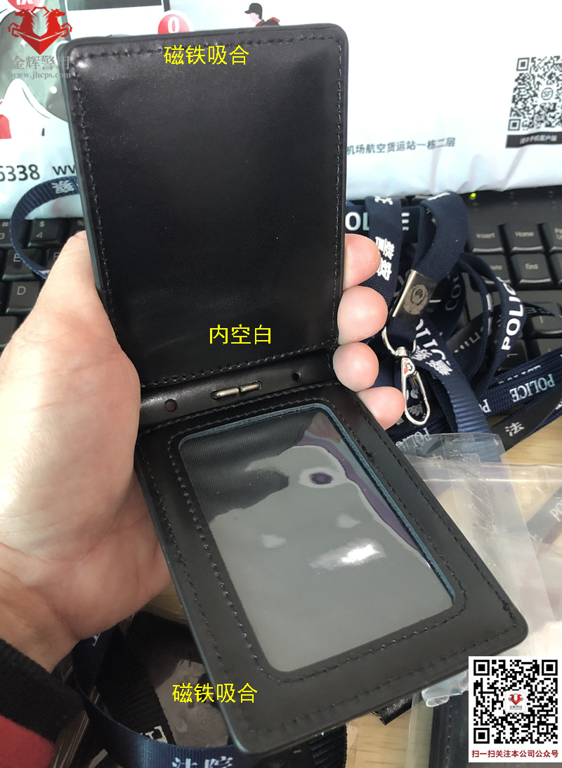 刑警掛式皮套參數:皮麵為牛皮二層皮,透(tòu)明膜為PVC,加強金屬掛扣設計可有效防止日常攜帶對頭部的磨(mó)損,皮質縫線工(gōng)藝精致無瑕疵,合金刑警標準徽(huī)章采用嵌入式固定工藝牢固美觀,其中皮套寬度(dù)7.5厘米,高度10.5厘米1厘米,厚度內部卡片存放警察證(zhèng)或者身份證大小尺寸工作卡片,閉合處采用磁鐵吸附,防止攜帶時候撬開。