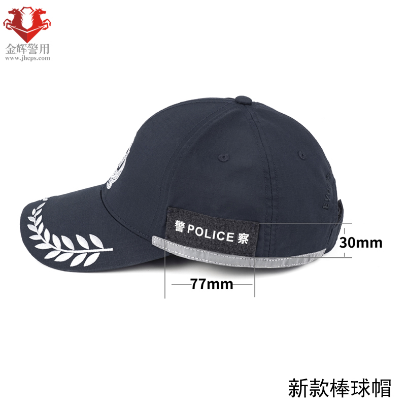 麵料(liào)成(chéng)分:TC65/35(65%聚酯(zhǐ)纖(xiān)維 35%棉 )±5% 帽簷上麵帶(dài)有銀(yín)光圖案刺繡。 帽簷底部絨麵,有效(xiào)杜絕(jué)反光(guāng)影響視覺。 帽子側麵帶有絨麵魔術貼並留(liú)有空隙(xì),可穿(chuān)插(chā)固定眼鏡,魔術貼外麵有POLICE警察字樣 帽子下邊沿(yán)帶有反(fǎn)光條設計 帽子背麵魔術貼設計,可隨意調節頭圍大小。 產品出自公安部入圍企業。