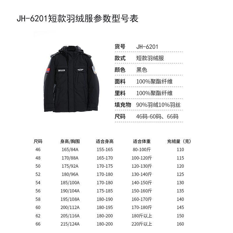 短款警務(wù)羽絨(róng)服外套(tào),警察執勤防寒服(fú)