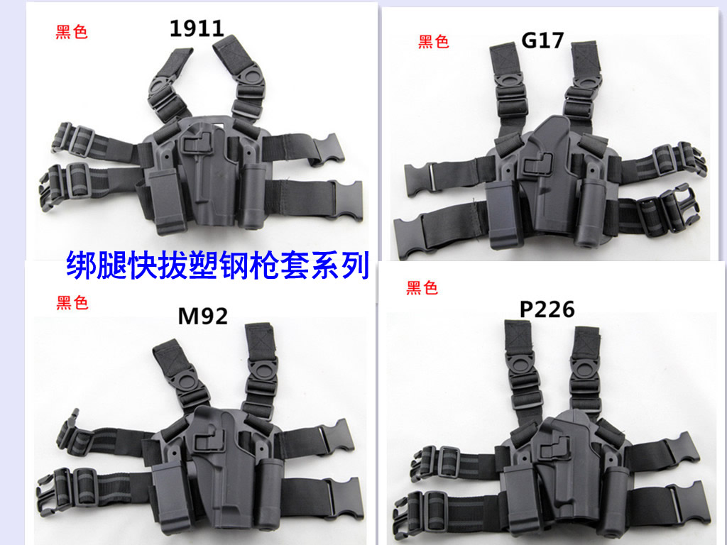 綁腿塑鋼快拔槍套外型全部采用工程(chéng)塑料結構,整(zhěng)個槍體配合協調,能承受擠壓與撞擊,和老款的皮質槍套相比,塑鋼槍套更具有很強的牢固性(xìng),外觀新穎,輕便靈(líng)活,緊急情(qíng)況出槍速(sù)度(dù)快,操作靈活簡單極易上手(shǒu),隱蔽性強適用於便衣刑偵等各警種使用。