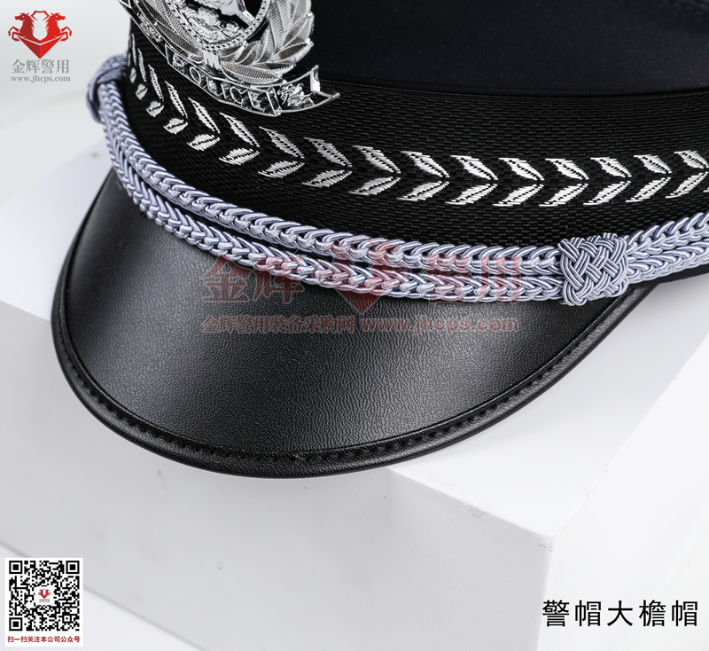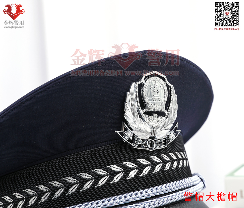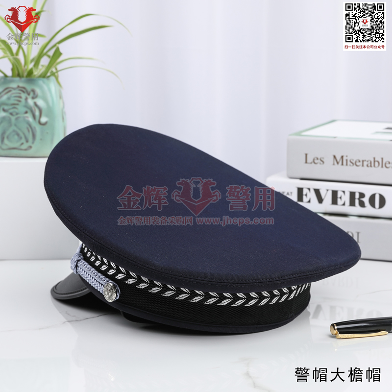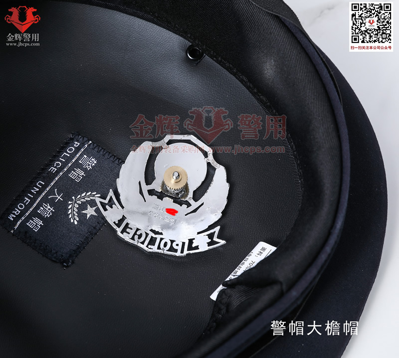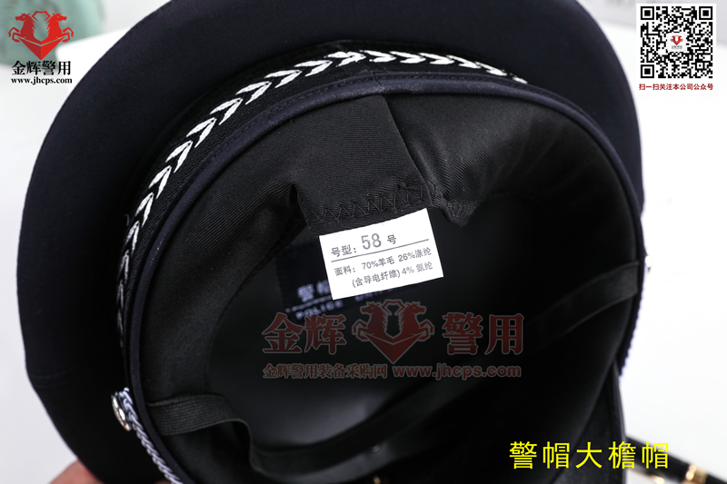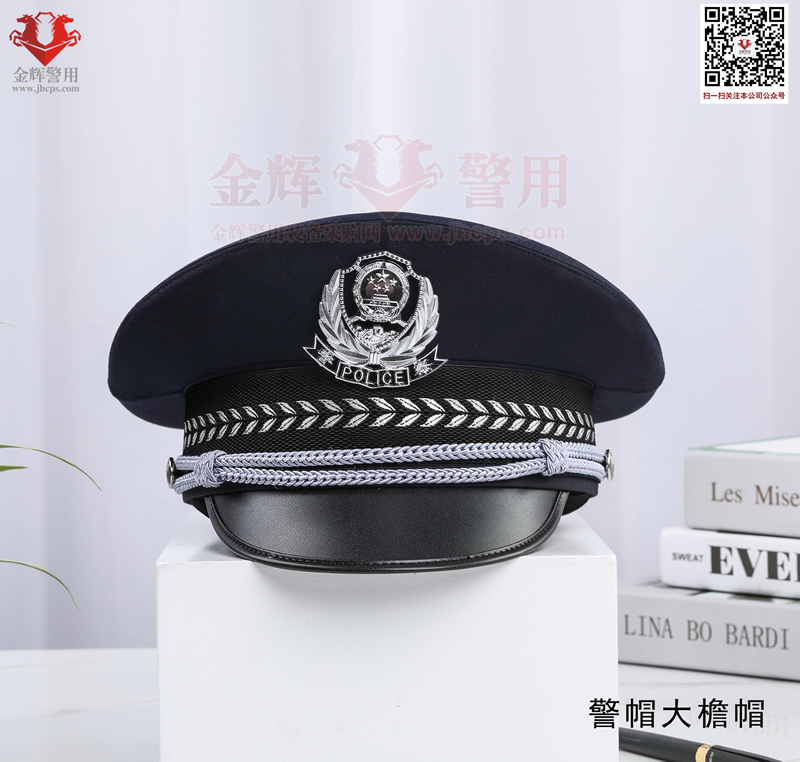 警用大簷帽是每警必備的一款彰顯我國警察(chá)的標配物品,警(jǐng)用大簷帽技(jì)術參數:麵料70%羊毛,26%滌綸(含導電纖(xiān)維)4%氨綸,產(chǎn)品為藏(cáng)青色(藏藍色)。定型美(měi)觀,佩戴莊嚴。同時(shí)可選白色交警款,夏季款。