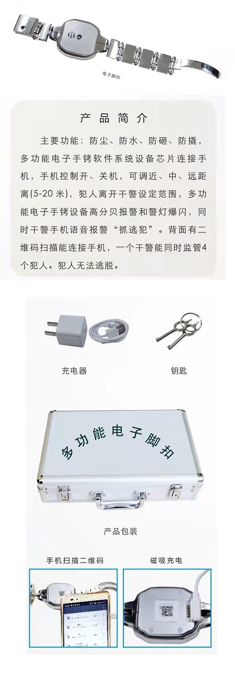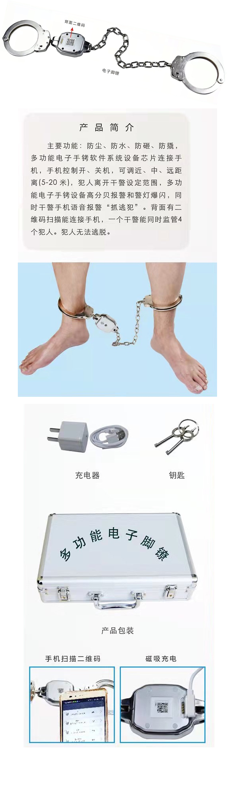 多功能電子腳(jiǎo)鐐,電擊腳鐐(liào),警用腳扣,法院監獄警用電子腳環