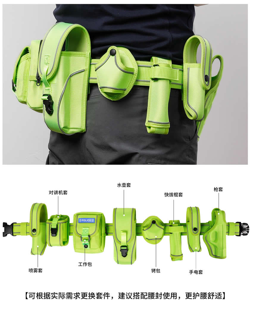 新款(kuǎn)熒(yíng)光尼(ní)龍執勤腰帶,可拆卸尼龍套件,夜間執勤反光性好。