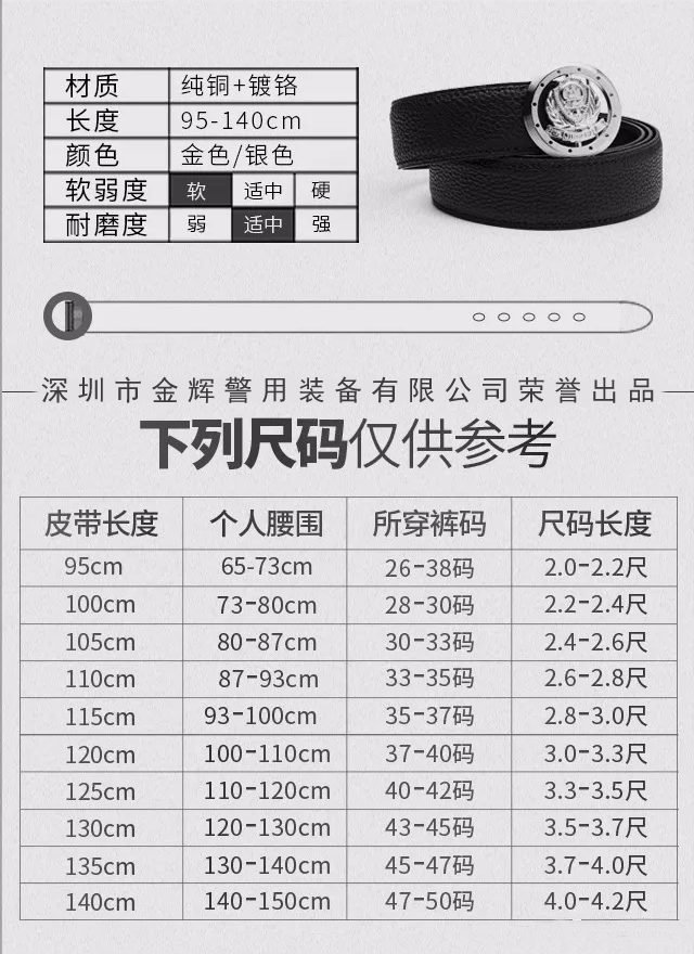 新(xīn)式公安頭層牛皮荔枝紋警察圓頭純銅腰帶,高檔警務禮盒包裝,款式精致美觀,可選金色(sè)腰(yāo)帶頭和銀色腰帶(dài)頭,純(chún)銅材料,精致美觀(guān)。