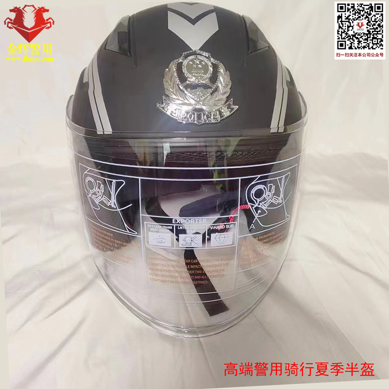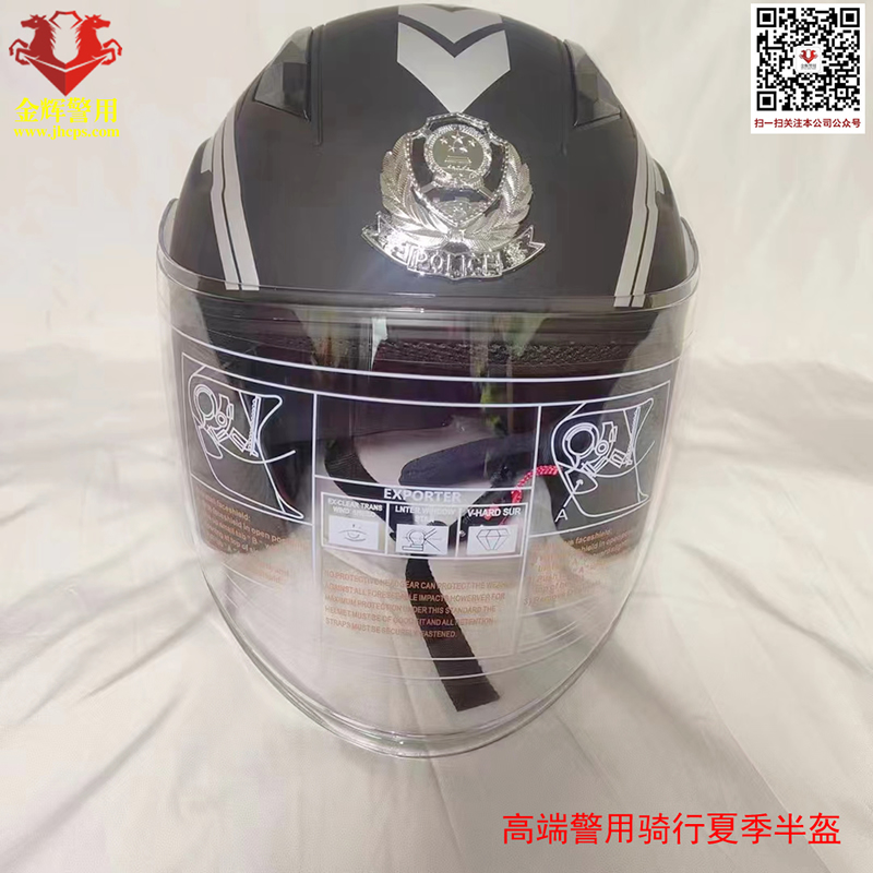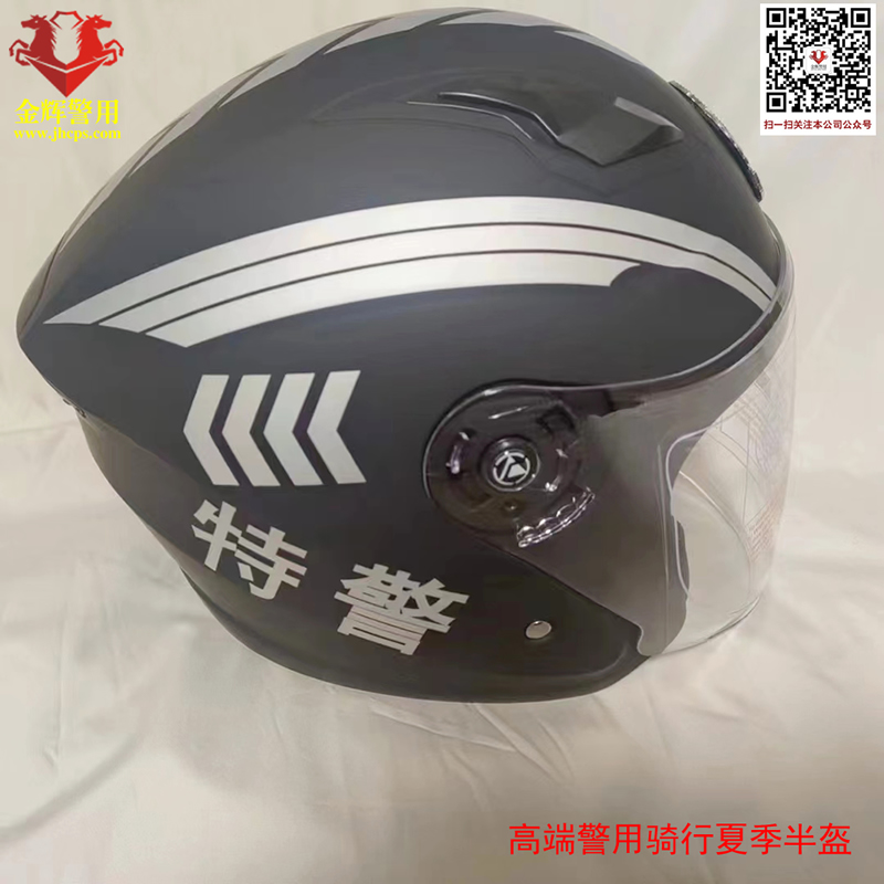 警用新款騎行夏季半(bàn)盔,警察鐵騎頭盔,專業警察摩托車頭盔參數: 材(cái)料:ABS-PC合金複合材料(liào) 質量:1.2kg 功能:一盔兩用,半封閉使用,也(yě)可以半盔使用(yòng),護目鏡可上掀,可以收起。風擋麵罩可快速釋放,鎖定。流線型風阻(zǔ)設計,前額,頭部(bù)多氣孔設計。內部襯(chèn)墊可拆卸,洗滌。 技術參(cān)數:透過率性能:頭盔麵罩可見光透過率均≥85% 耐穿透性能:按國標GB811-2010的要求進行試驗檢測。 吸收碰撞能量性能:加速(sù)度峰值(zhí)≤400g,超過(guò)150g的作(zuò)用時間<4ms,殼(ké)體不出現裂口麵罩防霧性能:麵罩表麵不結霧,麵罩磨損後霧度不大於2.5% 佩戴裝(zhuāng)置:佩戴牢靠舒(shū)適,解脫方便,可承受90kg的(de)拉力 鏡片:PC材(cái)料 包裝尺寸:紙箱81.5*86*37
