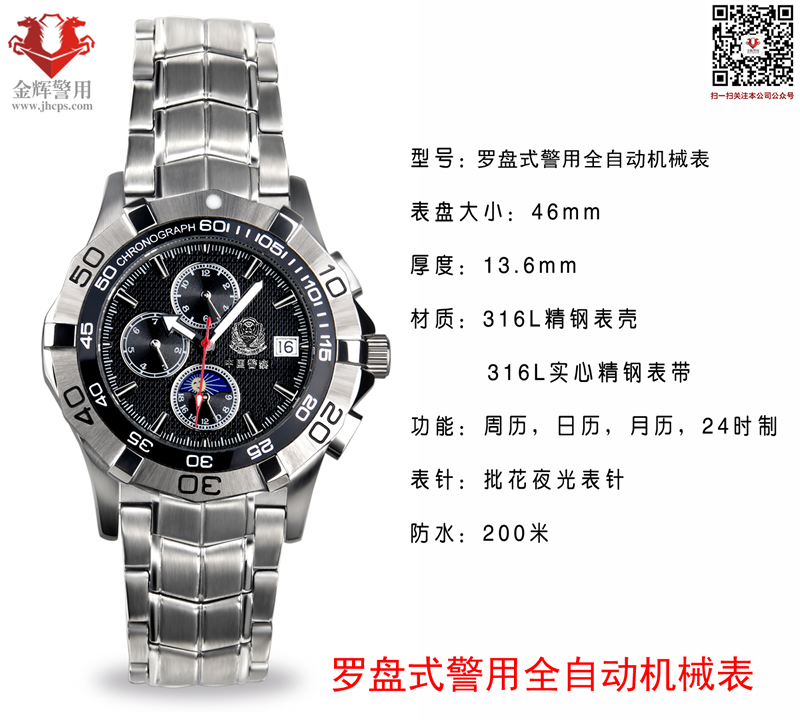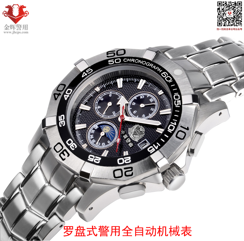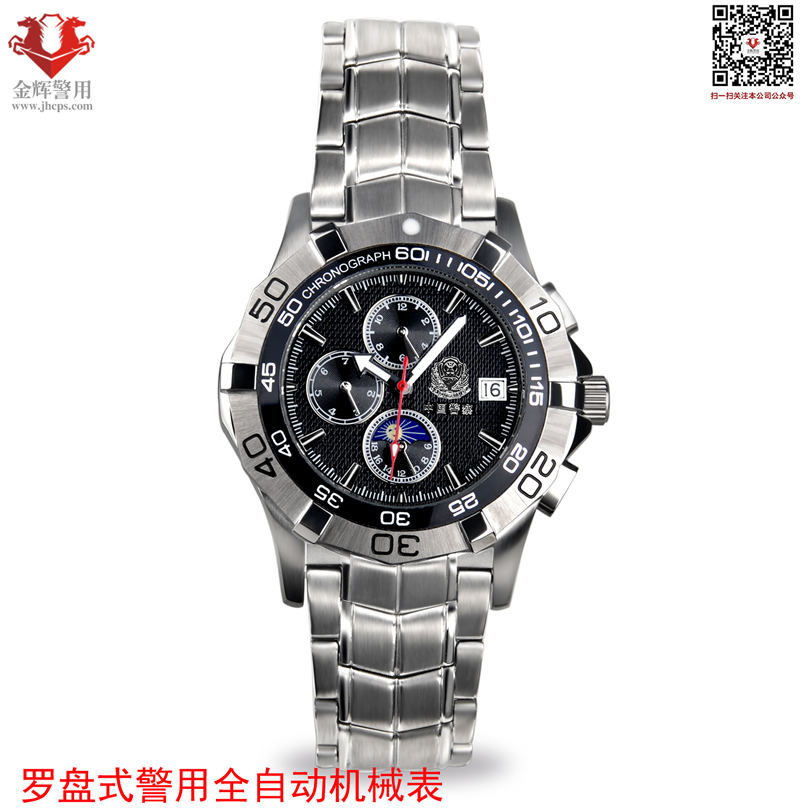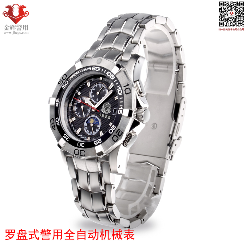 中國警察手表專(zhuān)賣,警用全(quán)自(zì)動機械表,不鏽鋼防鏽表帶,進口手表機芯