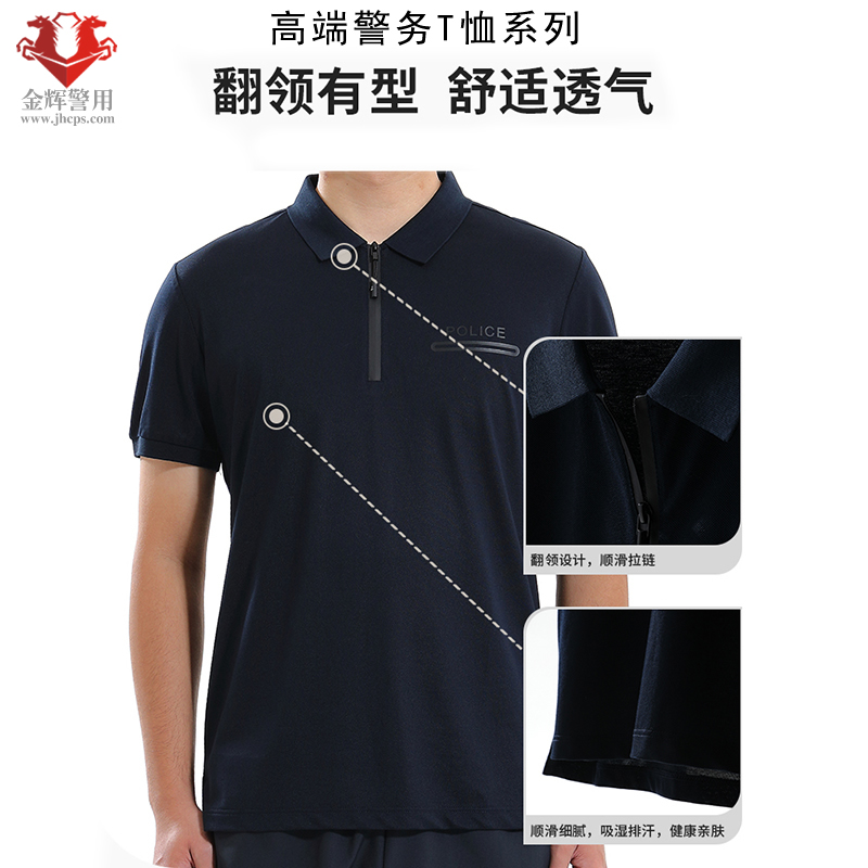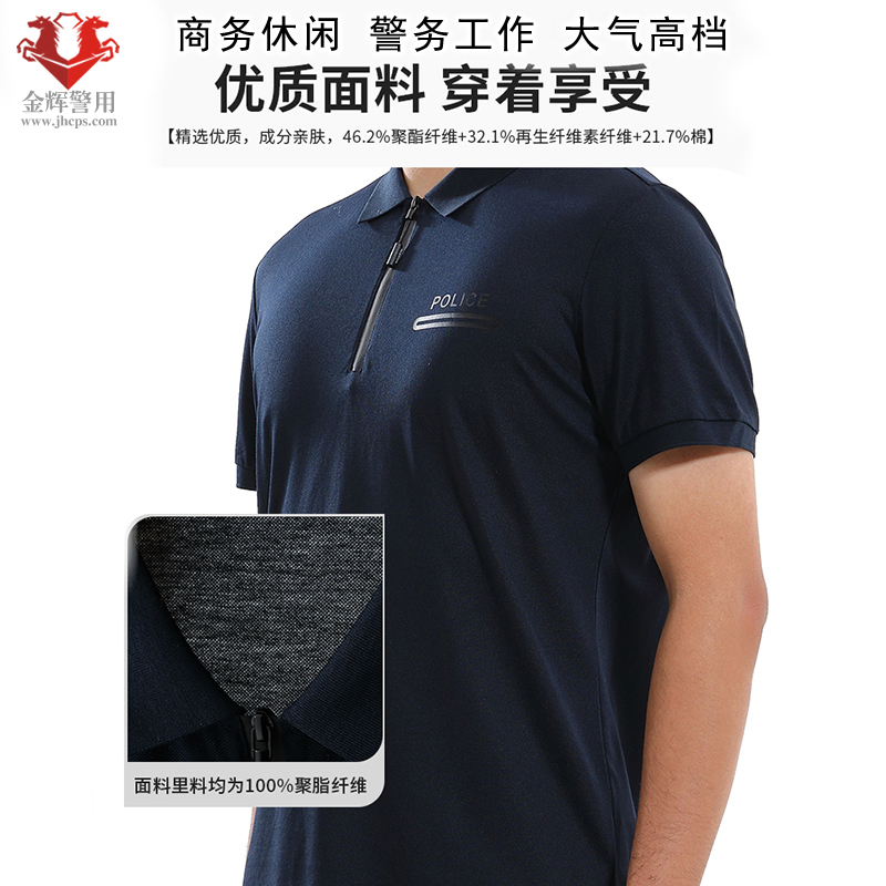 藏(cáng)青色高檔警(jǐng)察翻領短(duǎn)袖,適(shì)合搭配警(jǐng)褲或者(zhě)休(xiū)閑警務工作(zuò)用途。款式美(měi)觀,舒適透氣。藏青色警服T恤(xù)。