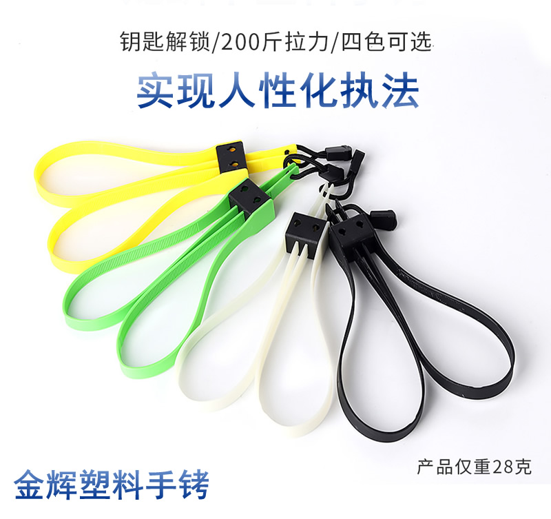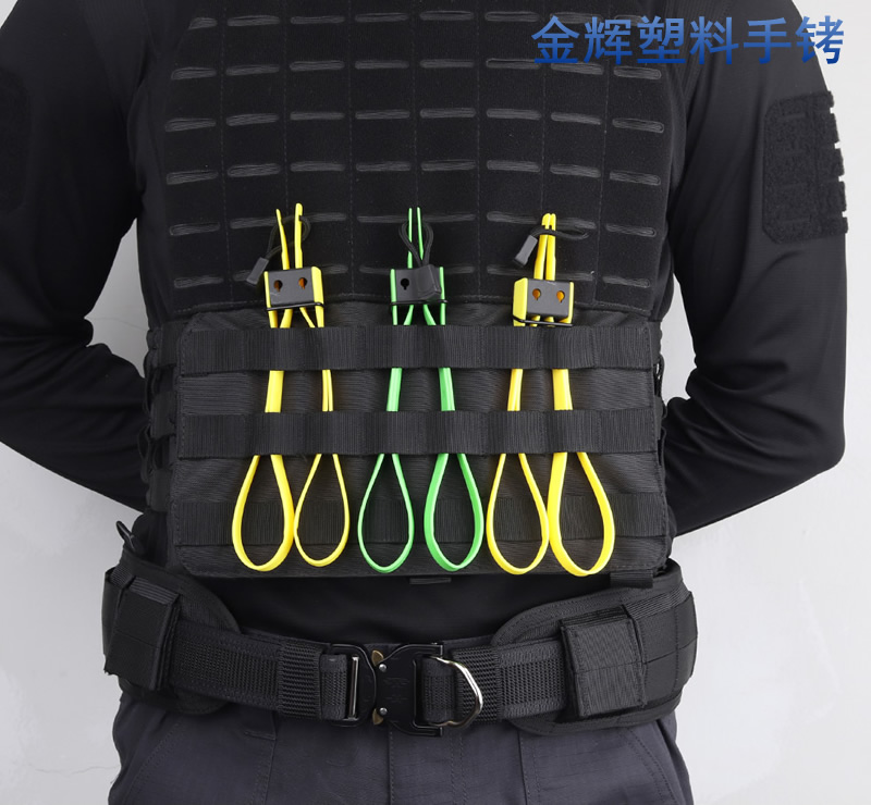 廣泛適用於大(dà)規模人員的約束控製,對無激烈抵抗的嫌疑人,使(shǐ)用塑料約束帶可(kě)以降低其心理抵觸情緒,增加人(rén)性化執法。 1、產品特點:可重複使用塑(sù)料約束帶的亮點為可重複利(lì)用設計,可以使用公安(ān)係統配(pèi)發(fā)的2018式(shì)新(xīn)標警用手銬鑰匙進行通用開啟。區(qū)別於傳統的塑料約束帶,隻能一(yī)次性使用,在鎖定後無法打開,隻能用剪刀剪斷,產品(pǐn)浪費較大。 2、重複使用次數:20次以上。 3、組(zǔ)成組(zǔ)件及使用:塑料盒1個,塑料紮帶2條。在緊急情況(kuàng)下,如缺少塑料盒,塑料窄帶可以單獨使用,塑料盒的作用主要用於固定兩條塑料紮帶,並有針對性(xìng)的鑰(yào)匙孔位(wèi),2個鑰匙孔獨立設置,分別用於解(jiě)鎖左右(yòu)2條紮帶,塑料盒的上下側具有4條槽位,紮帶從槽位進出,進一步穩固塑料紮帶的鎖定性。紮(zhā)帶上由5道鎖牙進(jìn)行鎖定(dìng),可以提供約100kg鎖合力,不易被掙紮開。鎖定結(jié)構左右側敞口設計,與(yǔ)2018式手銬鑰匙尺寸匹配。 ▲4、產品采用環保塑料材料,通過有(yǒu)害重金屬物質檢測,含量低於(yú)3mg/KG,(檢測(cè)結果符合國家標準,並在(zài)檢測報告中呈現結果)使用安全無(wú)危害。 ▲5、通過拉力測試,其中常溫拉力測試≥1191N,低溫拉力測試≥1411N,高溫拉力測試≥1140N(檢測報告呈現(xiàn)參數)