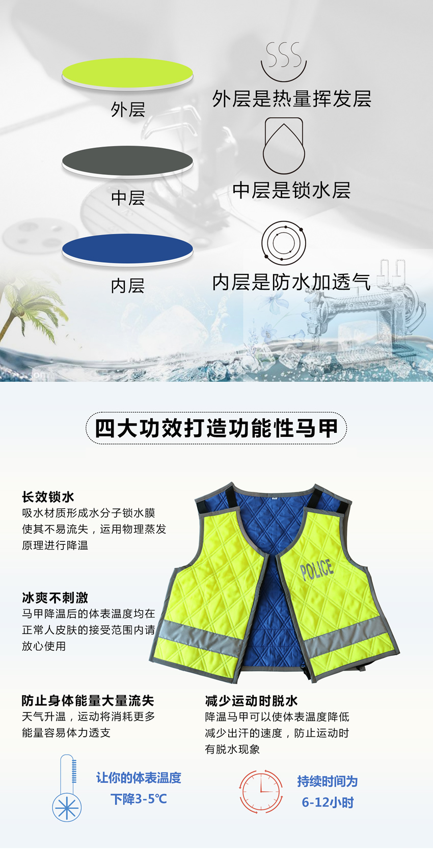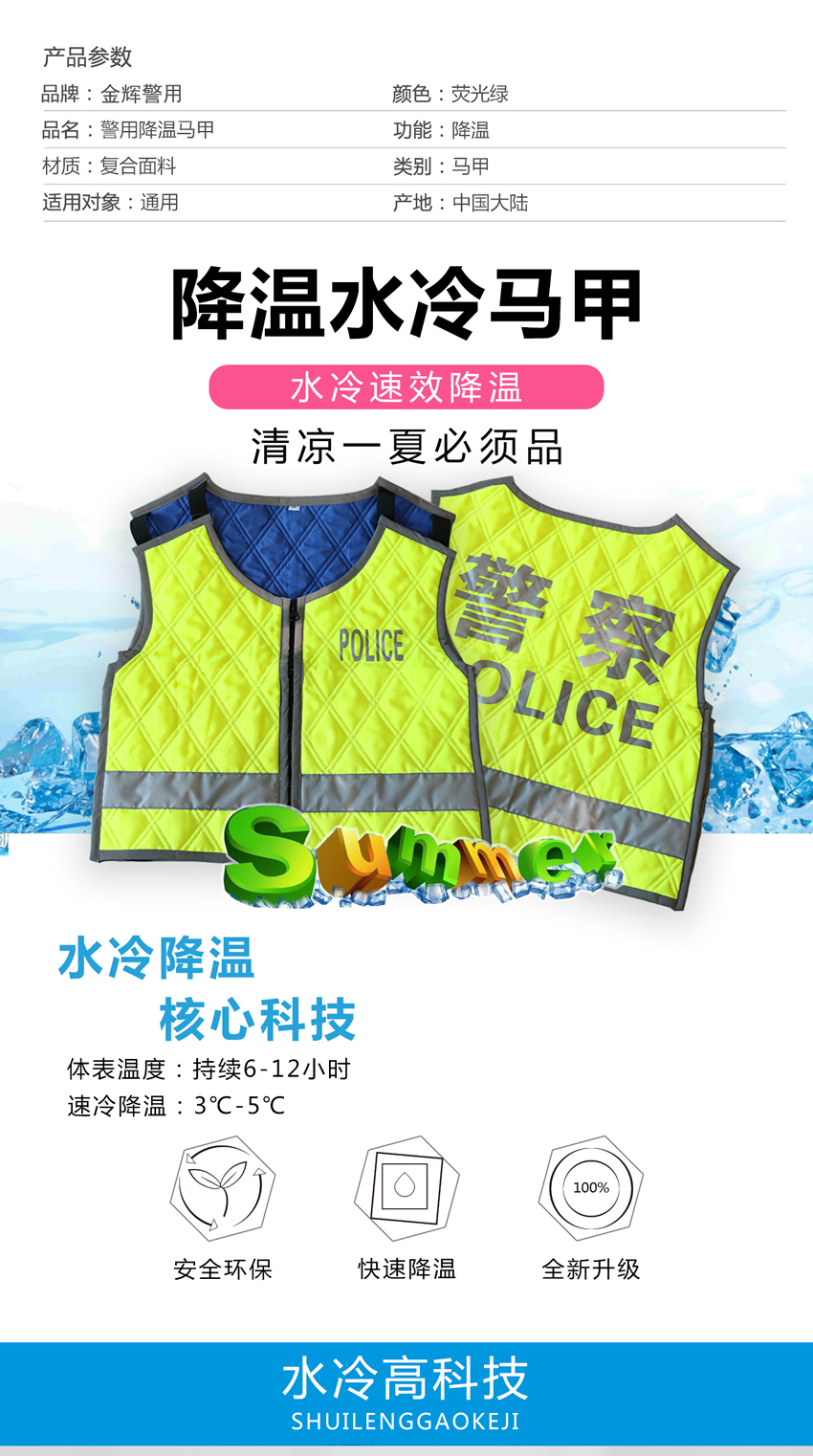 交警降(jiàng)溫馬甲 警用水冷降溫反光衣 公安降溫反光馬甲 鐵騎警隊防暑馬甲反(fǎn)光衣