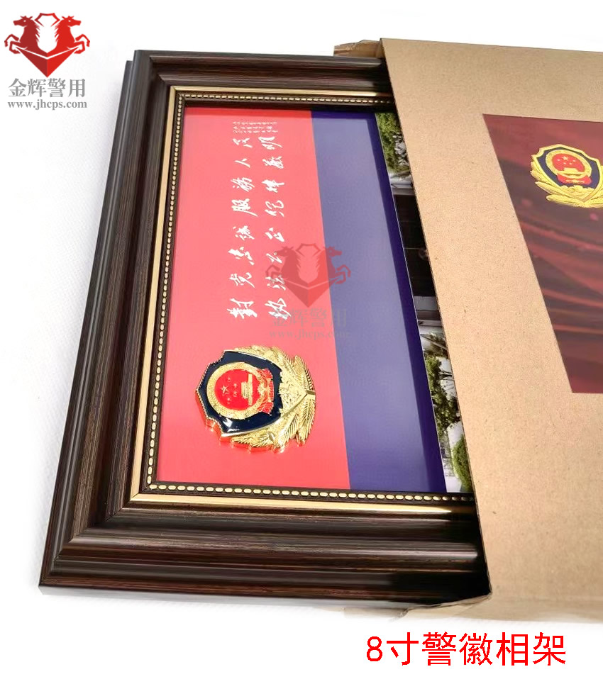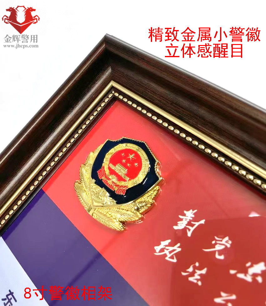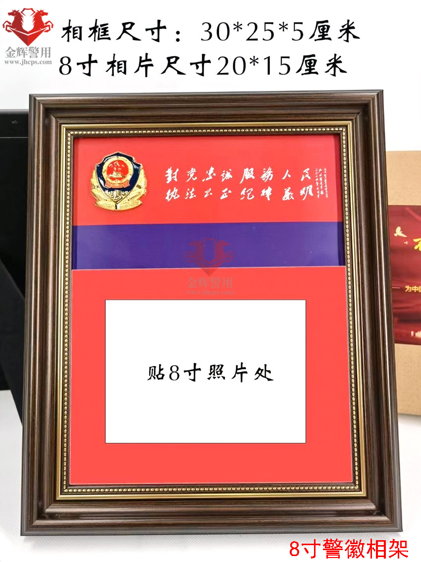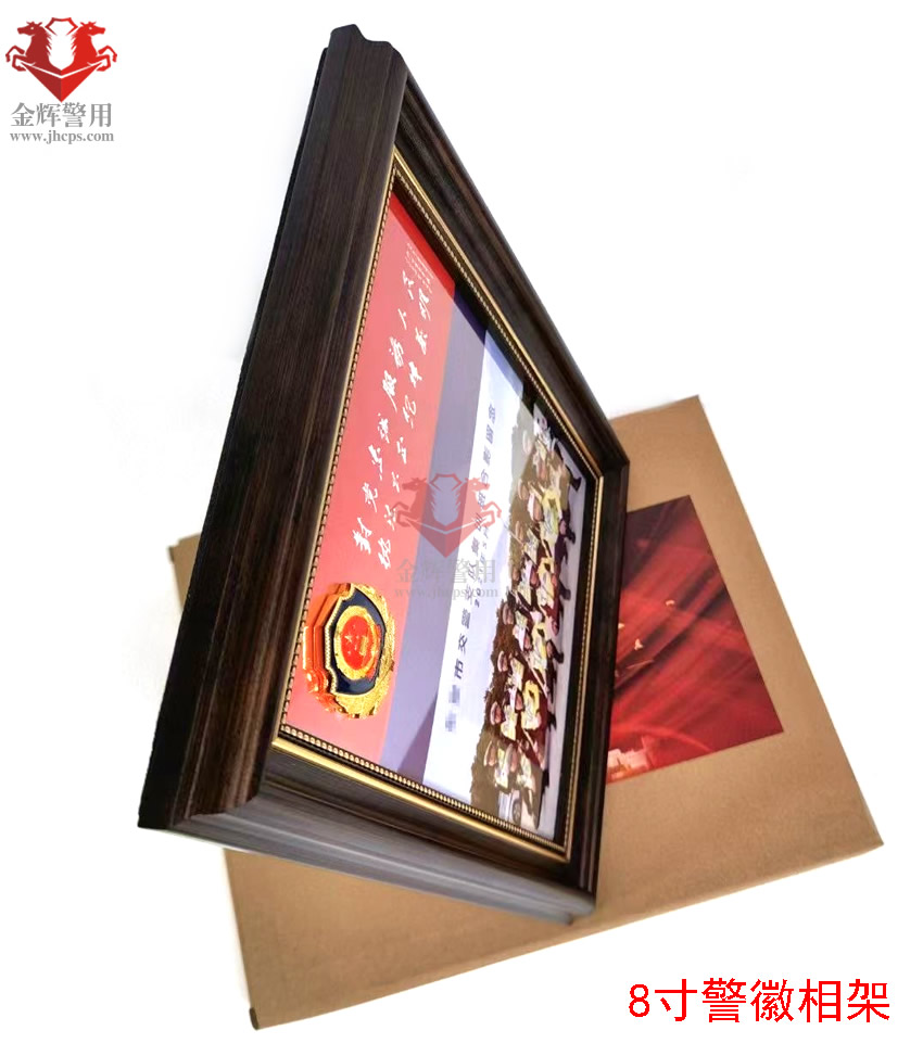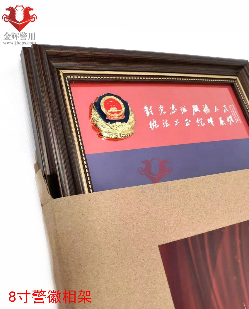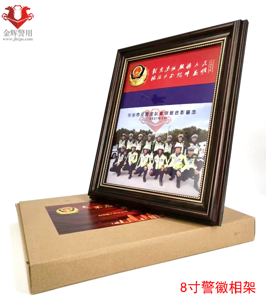 警徽相架(jià) 8寸合照擺放相架 個人警(jǐng)察照相架 實木立體金屬小警徽(huī)相架 公安文化擺件(jiàn)