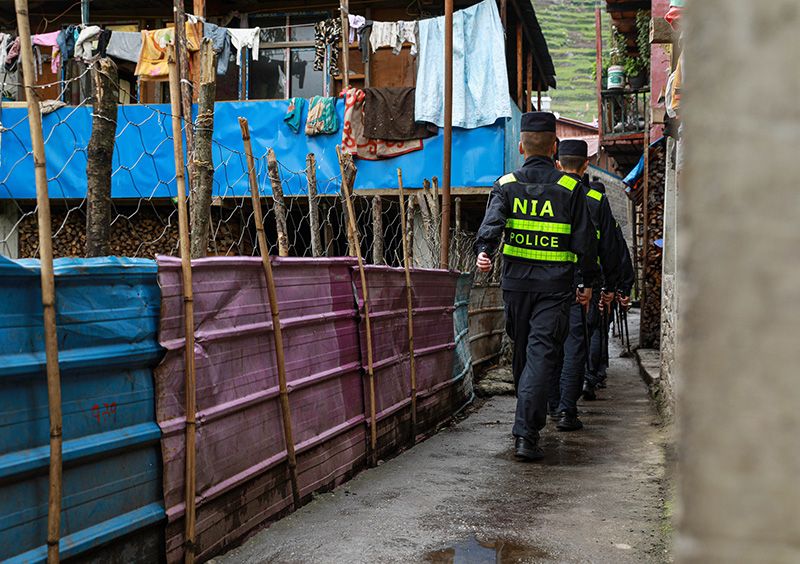圖為陳塘邊境(jìng)派出所的民警穿梭在巷子裏。