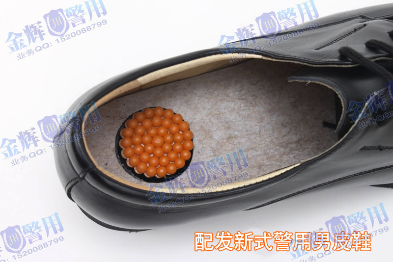 新款公安配發的正品警用皮鞋底部有按摩墊。
