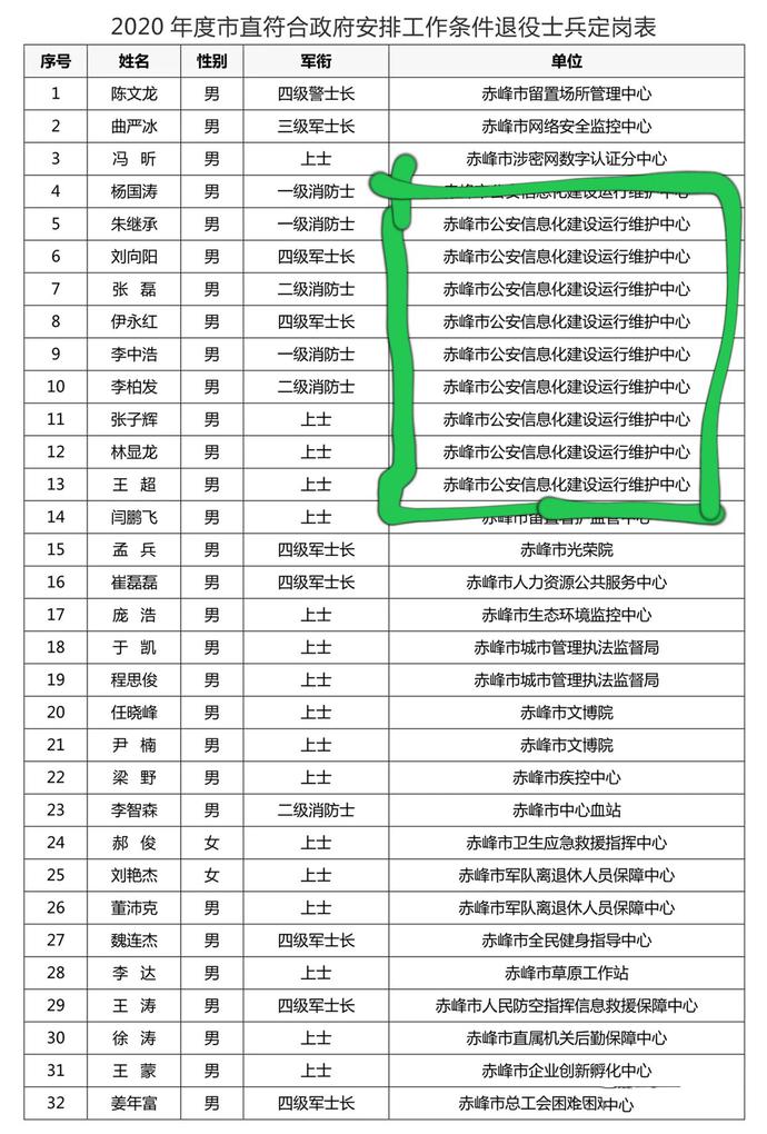這裏麵有當兵12年的上士,也有當兵16年(nián)四級軍士長,還有一些消(xiāo)防兵,總體來講安置的工作都是對口單位,有些退役士官被安置在光榮院(yuàn)、生態環境監測中心、文博院、疾(jí)控(kòng)中心、應急(jí)救援指揮中心、草原工作站、人防、直屬機關等重要工作(zuò)崗位,想想都很美單位就跟不用講了,全部都是個頂個的嘎嘣脆單位[淚奔][淚奔]。