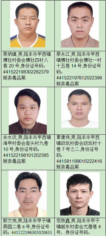 為進一步實現“清零”目標,現(xiàn)將僅剩的(de)13名陸豐籍(jí)涉毒逃犯的情況重新梳理發布,陸豐公安希望廣大人民群眾(zhòng)積極提供在(zài)逃犯(fàn)罪嫌疑人線索,並對舉報人和協助公安機關工作的人員嚴格保密。其獎勵標準為:“舉報(bào)一(yī)名獎(jiǎng)勵80萬”。