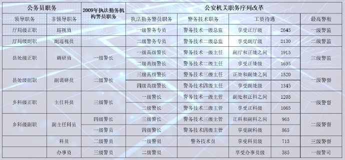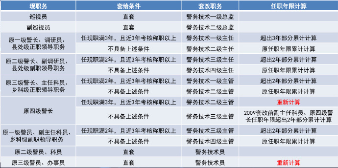 警銜套改已經幾個年(nián)頭了,下麵我們通過表格方式來向大家介紹套改職務和薪酬標準。
