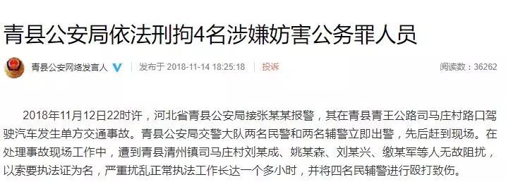 河北省青(qīng)縣公安局輔警執勤被毆打情況(kuàng)通報