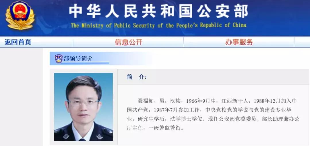 目前,公安部已有兩名部長助理,聶福如和林銳,林銳於兩月前,由廈門市副市長、市公安局局長,調任公安(ān)部黨委委員、部長助理。