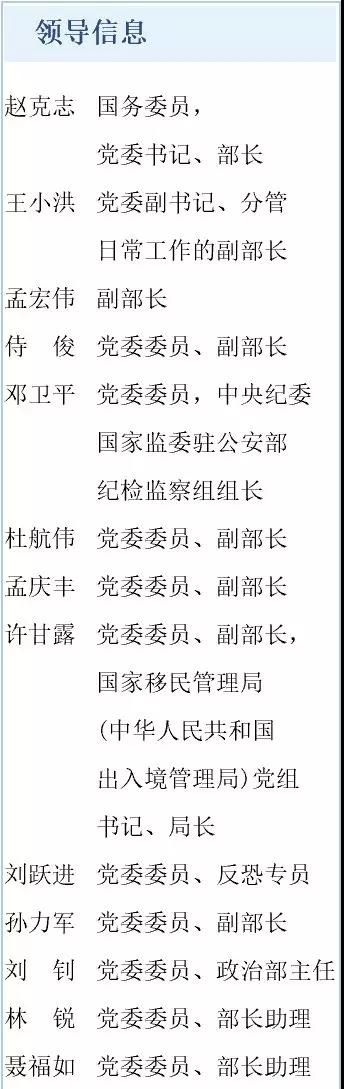 據公安部官網顯示,現任部(bù)領導班子成員包括: