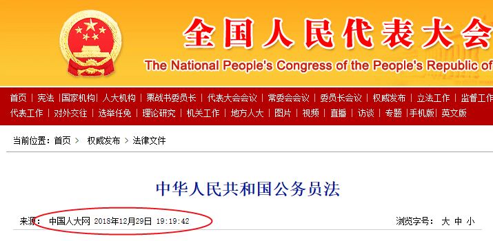 就在2019年12月29日,新公務員法修訂已通過,修訂的內容不算很多,但是關(guān)於基層比較關心的大多問題都有修改,如提前退休製(zhì)度、職級晉(jìn)升、待遇製度等。自2019年6月1日起施行。