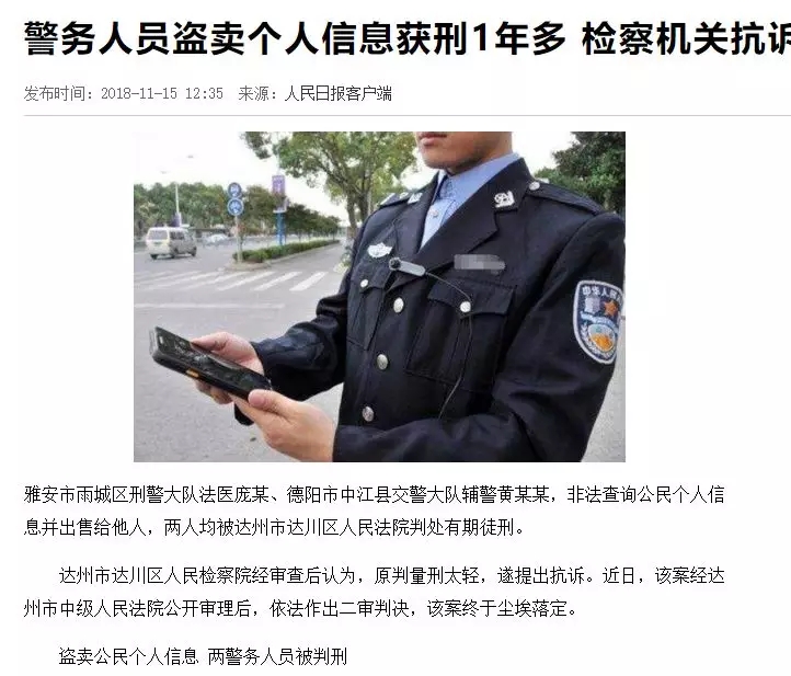 公安幹警通過內網查詢盜賣個人信息獲刑(xíng)又丟(diū)飯碗