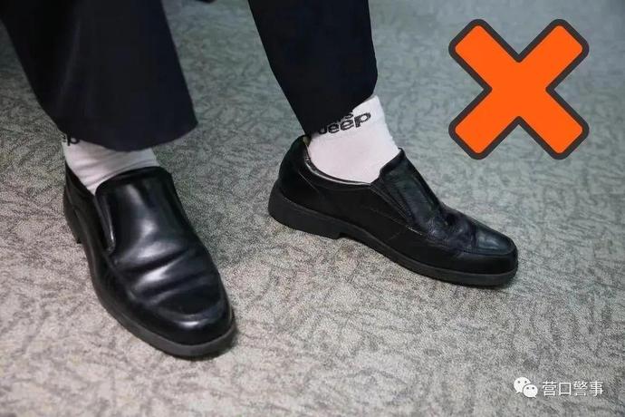 正(zhèng)確:根據《公安機關人民警察內務條令》第四章(zhāng)警容風紀第一節著裝規範第四條,除工作需要或者其他特殊情形外,應當穿製式皮鞋、作訓(xùn)鞋或者其他黑色皮鞋,穿深色襪子,不得赤腳穿鞋或者赤腳。男性民警鞋跟一般不高於3厘(lí)米,女(nǚ)性民警鞋跟一般不(bú)高於4厘(lí)米。