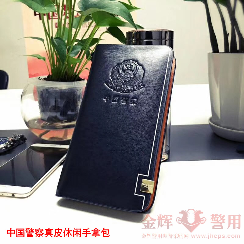 說明:2018新款公安單位定(dìng)製配發(fā)款休閑頭層(céng)牛皮手包,產品做工精致,鋼(gāng)壓(yā)警徽圖(tú)案做工精湛。添加同色手腕帶便於攜帶。可存放各種卡片和手機。