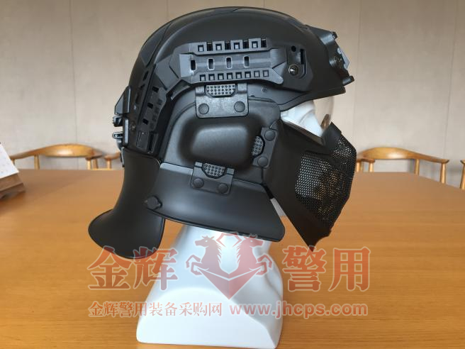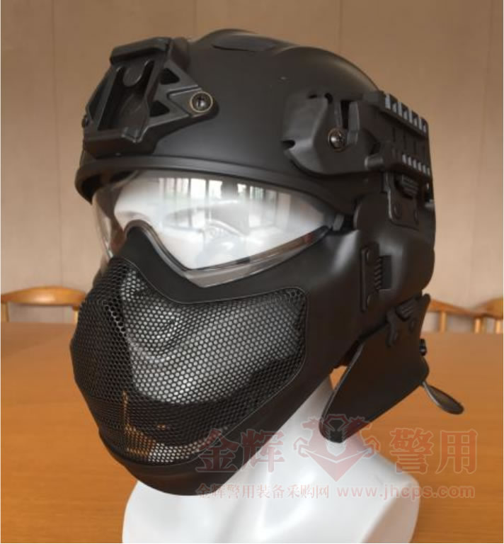 其盔體按國際並符合公安部防暴頭盔標準,內置隱(yǐn)藏漸變護目鏡及(jí)側(cè)導軌外懸掛(guà)式快速裝卸防護麵罩,與盔體密合(hé);具(jù)有(yǒu)質(zhì)輕、高強度、外(wài)形威(wēi)嚴、雙鏡鏡片透光(guāng)率好,視(shì)野(yě)開闊、佩戴(dài)緩衝減震舒適、牢靠、秒速人盔分離優點是警務人員(yuán)在反恐反暴鬥爭中為保障自身(shēn)安全。