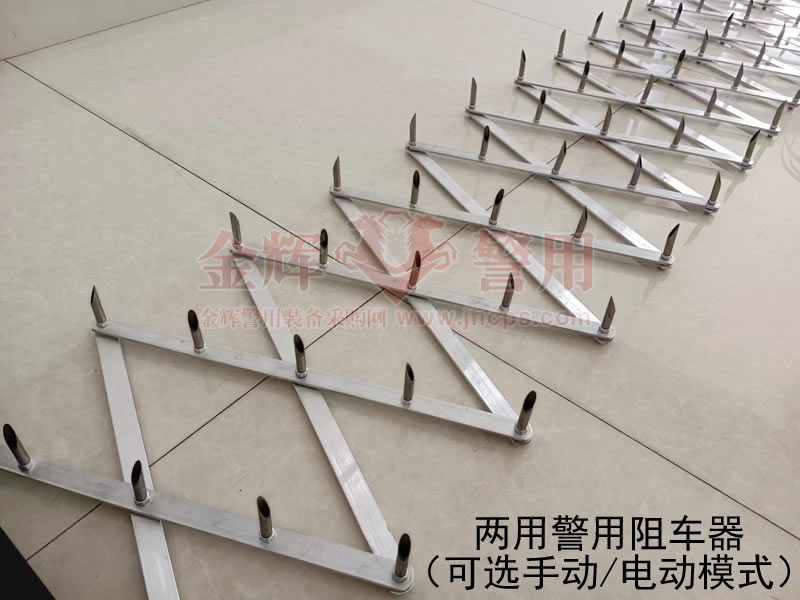 一、路(lù)障的(de)構成:路障阻車器由鋁合金條活動支座、硬質壓鑄鋅三角(jiǎo)棱刺針構成。 二、路障的使用(yòng):鋁合金(jīn)條由鋼製鉚(mǎo)釘接成活動(dòng)支架,可在使用時隨意(yì)拉開,完成工作後簡易合攏即可。三角刺針有中心通氣孔,各棱麵上有放棄槽,並與中心孔相連。刺針紮入車胎後,胎內空氣便會直接從中心通氣孔中快速釋放。 當車輪接觸到硬質壓(yā)鑄鋅鋁合金釘(dìng)路(lù)障(zhàng)時,由於行駛(shǐ)中(zhōng)的壓力,使車輪壓向路障上的三角刺針,三角刺(cì)針會隨著車輪移動(dòng)的方向刺入車胎(tāi),並(bìng)以每枚≥15開/秒的速度泄氣,氣壓輪胎會使刺針與路障分離。車輪繼續(xù)轉動時,使車胎上(shàng)刺針越刺(cì)越深,車胎中氣體便從刺針內孔泄出(chū)。一般將有四至六支鋼釘刺入車胎(tāi),在不到20秒時間內便將氣(qì)體全部放出,達到有效攔截(jié)車輛的目的。 三、路障的結構:采用鋁合金型(xíng)材(cái)構成伸縮架,伸縮(suō)長度自由拉出,伸縮架安有(yǒu)158枚鋒利三棱針,棱麵開(kāi)有排氣槽,車輪碾過即被放氣,立即癱瘓不能行駛。 四(sì)、路障的注意事項:當攔截一次車輛成功後,隻需補裝失去的刺針及橡膠(jiāo)套,又可(kě)為下次(cì)攔截(jié)車輛繼續使用(yòng)。循環使用、安全有效、道路覆蓋麵大、適應性強、重量輕、使用方便等特點。
