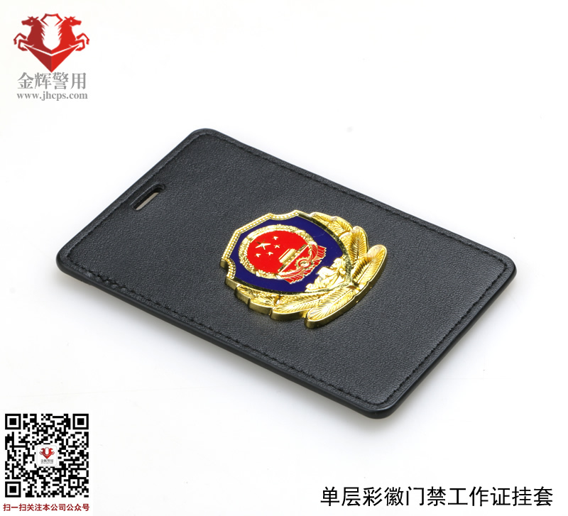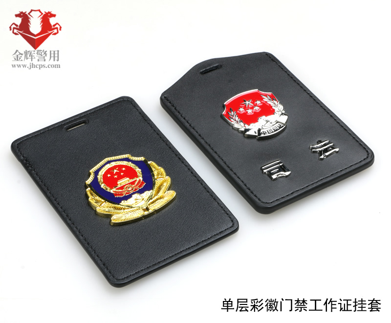 牛(niú)皮二層皮材料,黑色。單獨警徽設(shè)計,配掛繩。