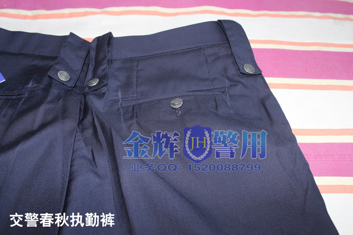 新款現役交巡(xún)警執勤褲為(wéi)交警或者戶外執勤民警獨有配發,外設有可以穿戴執(zhí)勤外(wài)腰帶的(de)大耳(ěr)扣。