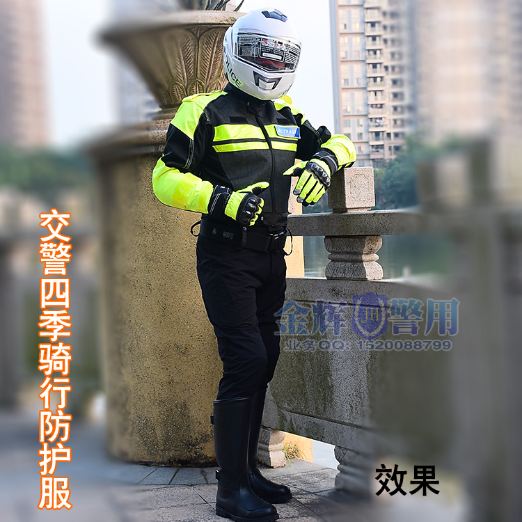 新款警用(yòng)摩托車騎行服春秋冬四季合(hé)適。本款包含上衣,褲子,腰帶,褲子,手套,詳細產品實物請看下圖。