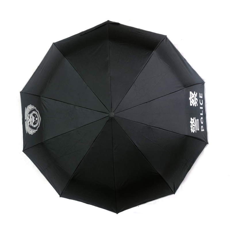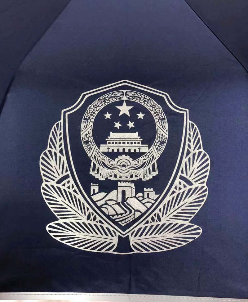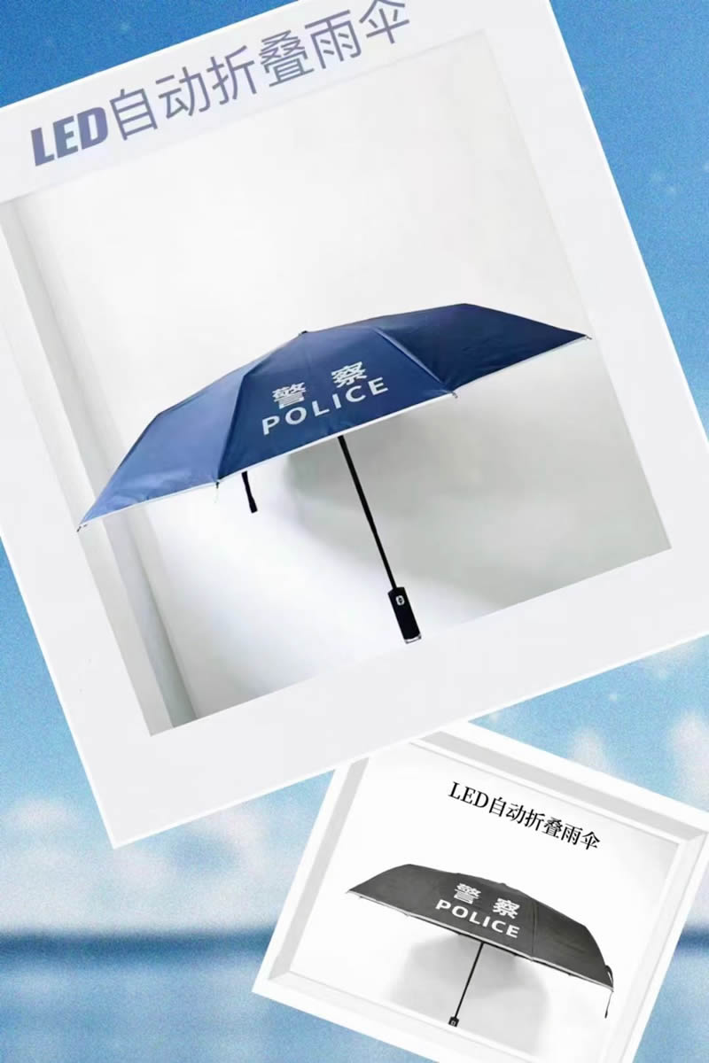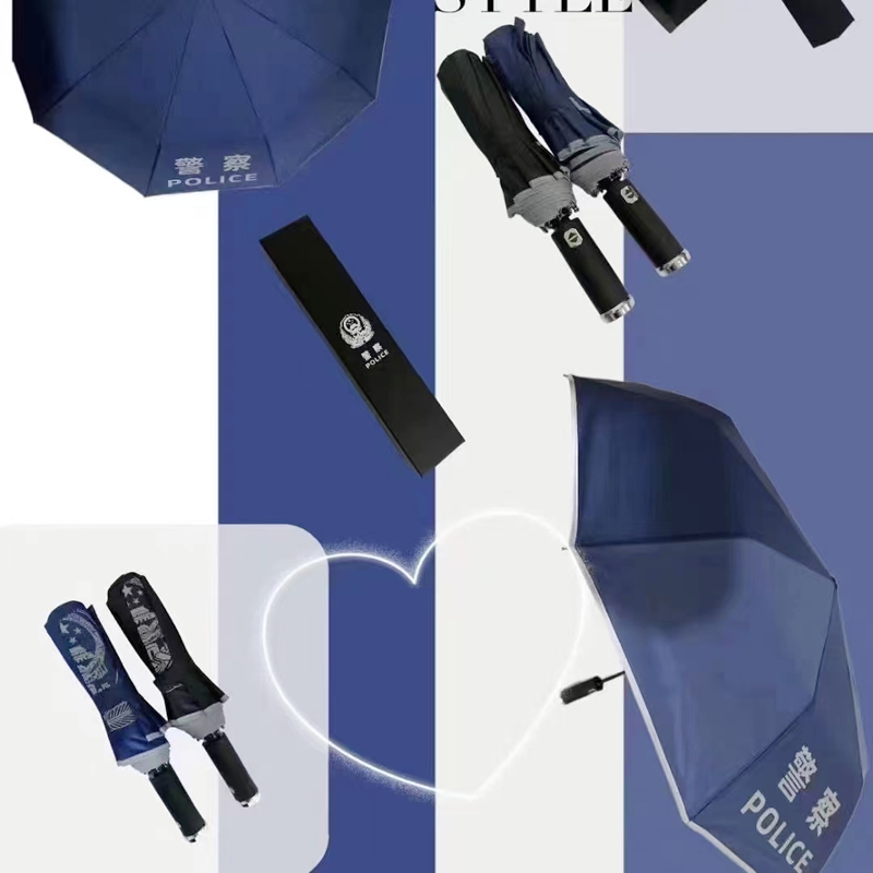 警(jǐng)用折疊雨傘,外觀印花反光警徽和反光警察文字圖案,帶照明設計,自動(dòng)收放,適合作為(wéi)警察文(wén)化(huà)紀念品,警察節禮品,民警個人存放車內備(bèi)用。