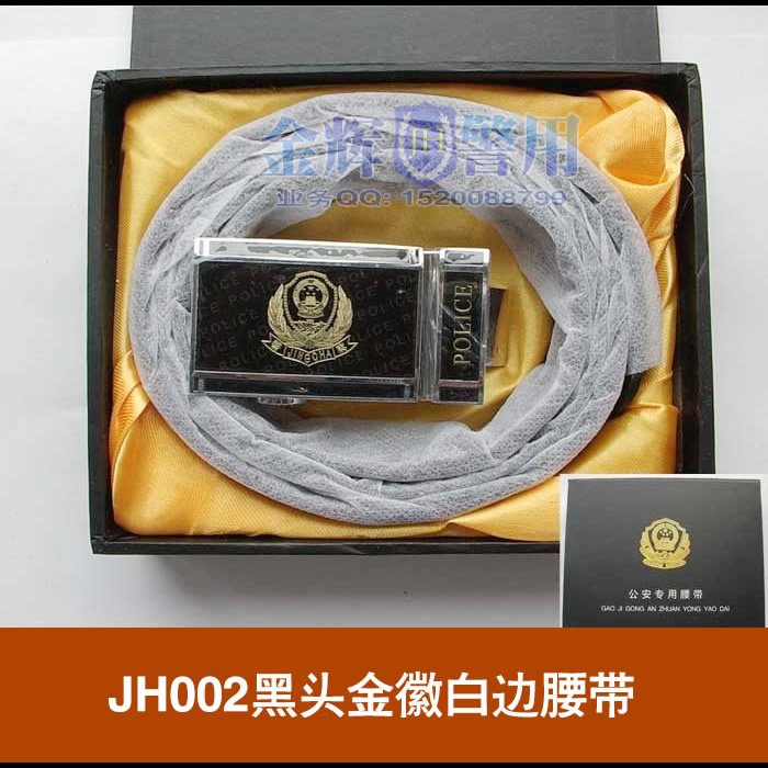 JH002金色警徽(huī)黑頭高級警官真皮(pí)腰帶 公(gōng)安局長製式內腰帶 真皮警察紀念(niàn)禮品腰帶