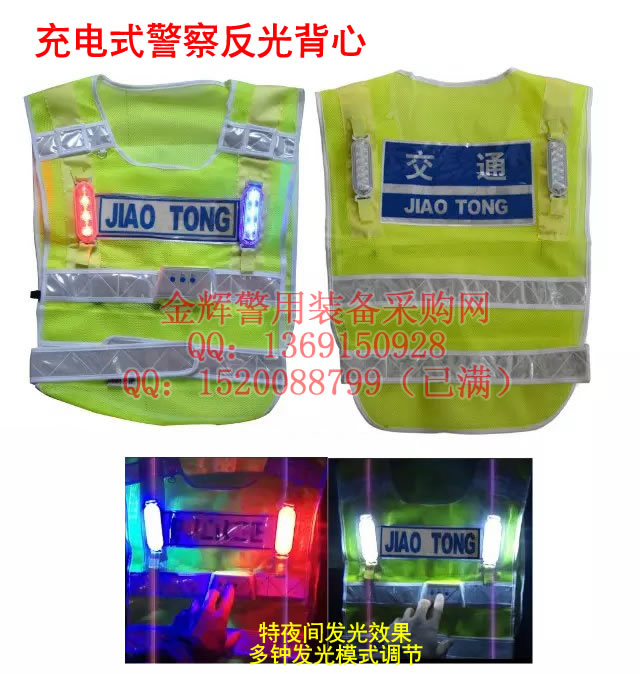 新款警(jǐng)用充電式反光背心,進口LED燈(dēng)膽和鋰電池(chí),充電一次可以使用長達5-8小時的執勤時間。