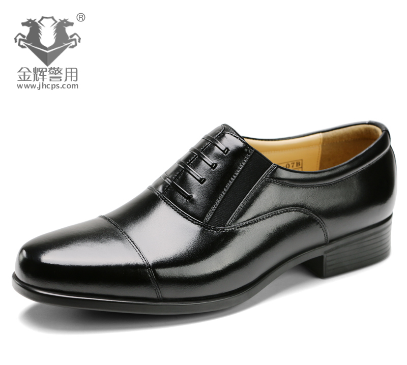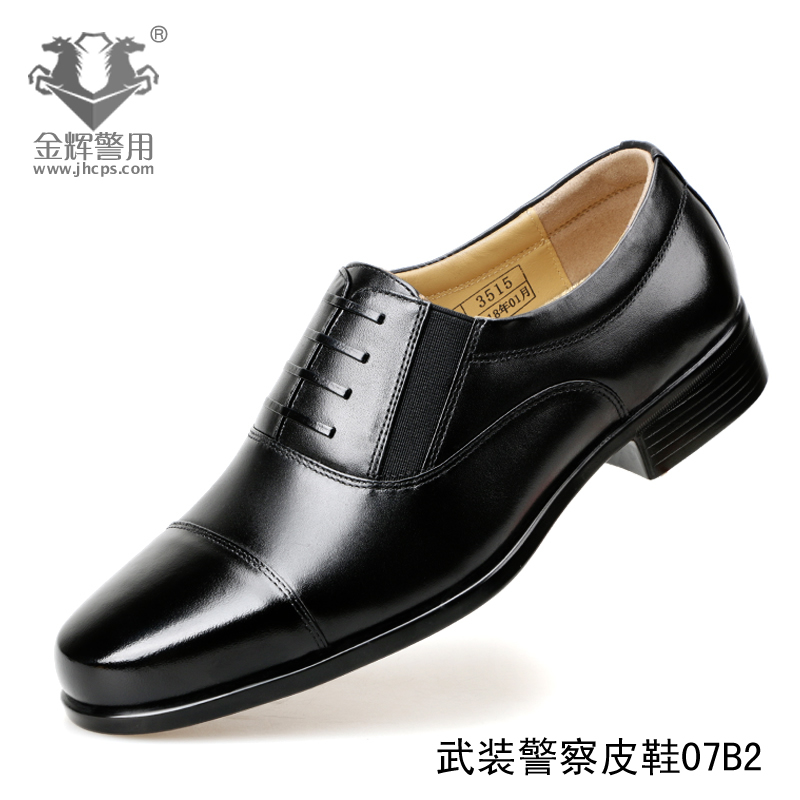 正品警官三(sān)接頭皮鞋 年輕幹警皮鞋 移民局警(jǐng)察皮鞋 免係帶三接頭皮(pí)鞋